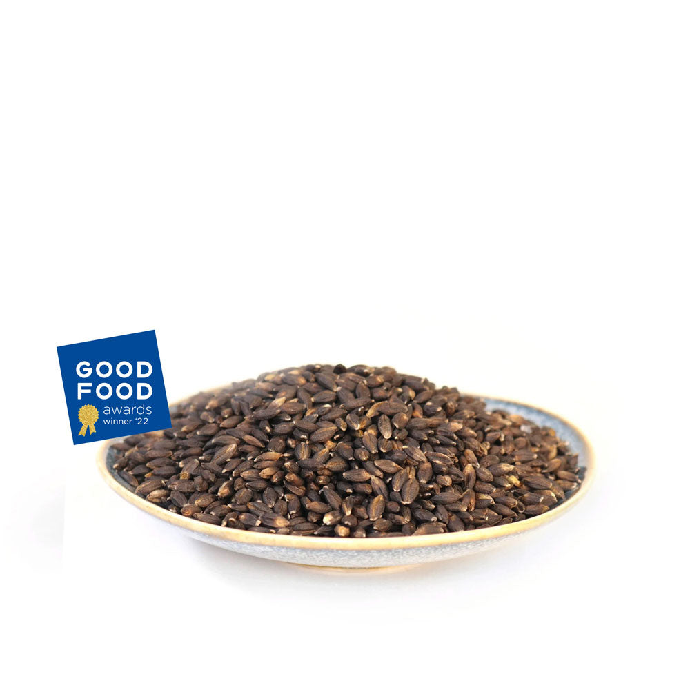 Our Organic Tibetan Black Barley is provided by Oregon Grain & Bean, with this crop grown on an organic farm in Oregon. Tibetan Black Barley, with its bran intact, retains its firm, plump texture during cooking, making it perfect in soups, stuffings and stews. It’s also great when mixed with other grains due to its somewhat chewy, contrasting texture.