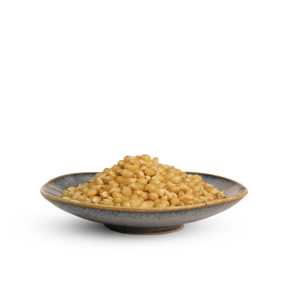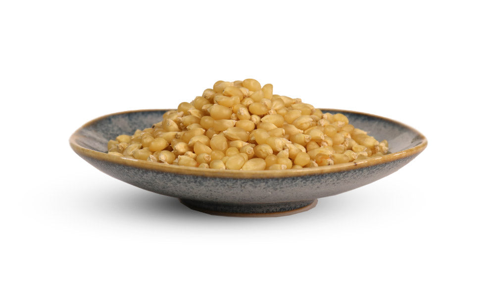 Our white popcorn tends to yield mushroom-shaped kernels when popped and has a slightly sweet taste.
